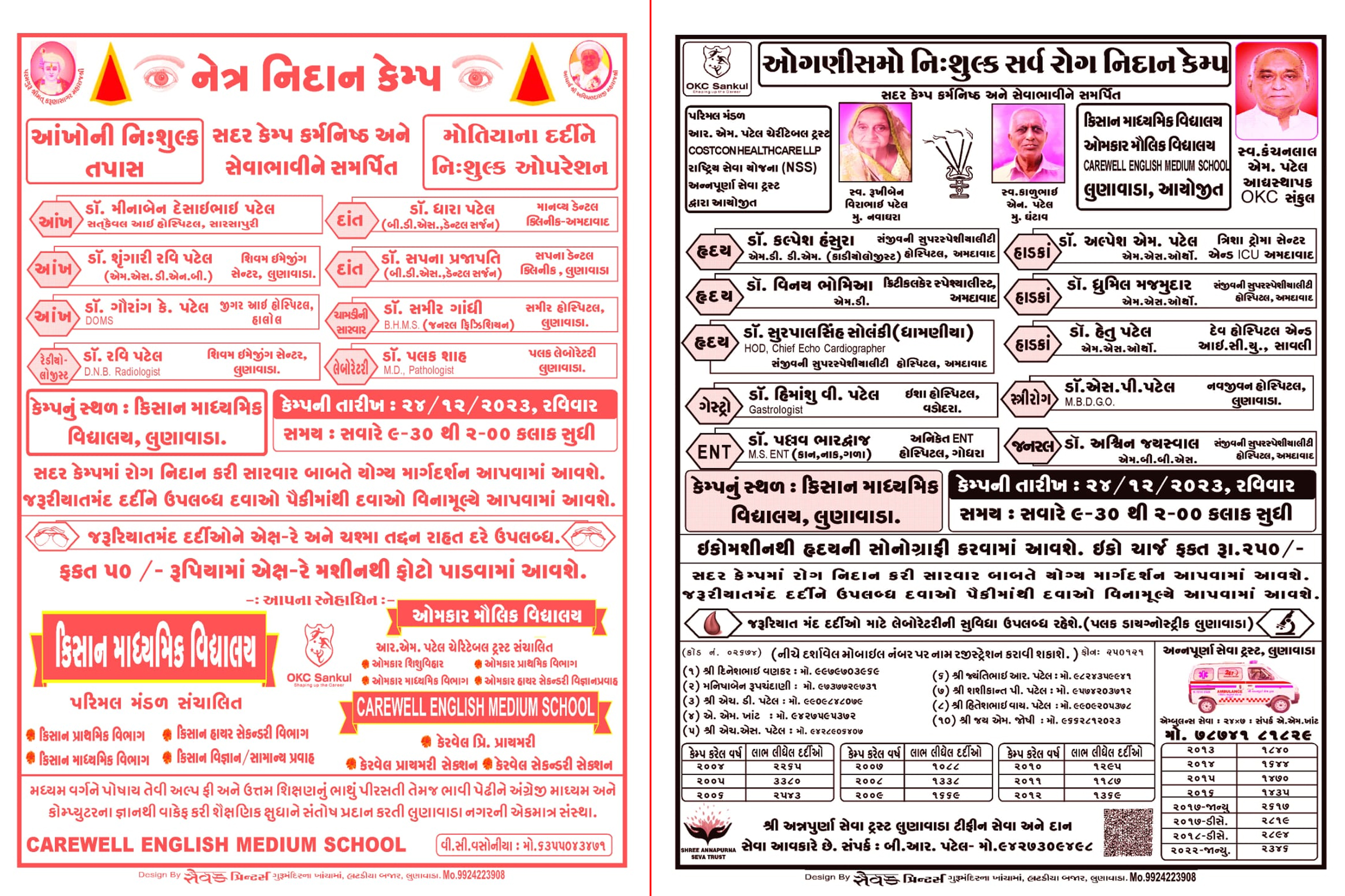 1. Free-of-Charge Medical Consultation to all patients from distant locations, villages and rural areas (once or twice in a year) in and around Mahisagar & Panchmahal district